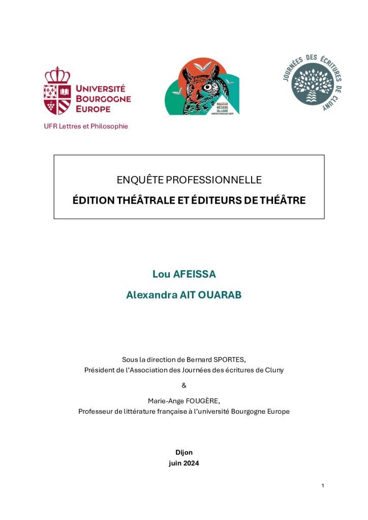 Enquête professionnelle sur l’édition théâtrale et les éditeurs de théâtre :