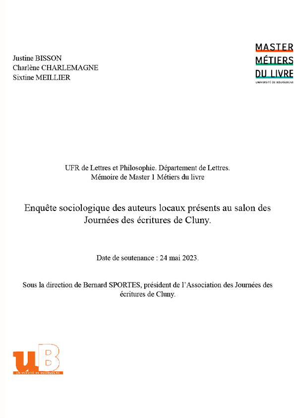 Enquête sociologique des auteurs locaux présents au salon des Journées des écritures de Cluny